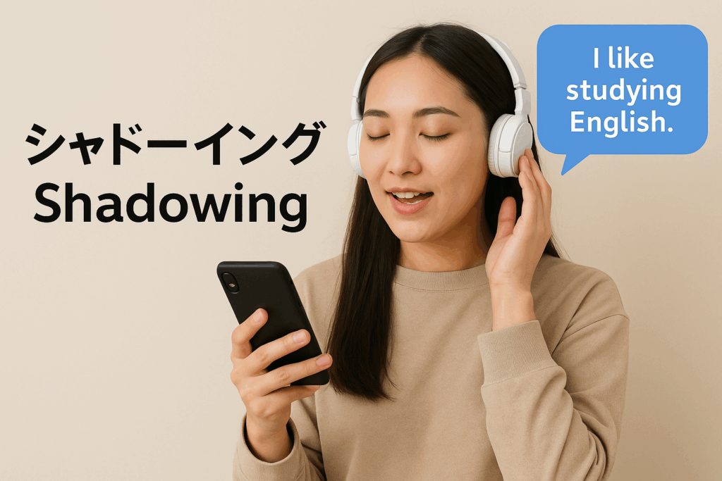 シャドーイングとは、聞こえた英語をそのまま真似して発音する練習法です。